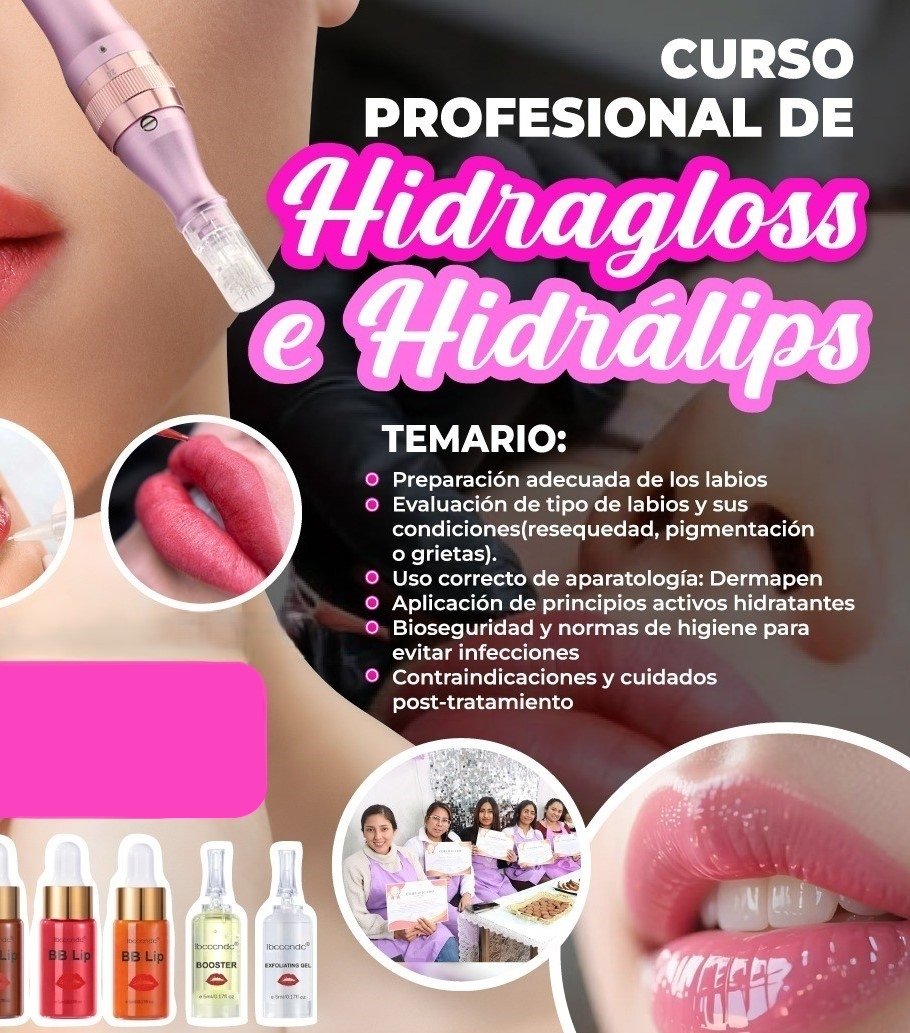 ¡Matricúlate ahora y aprende a realizar tratamientos de Hidragloss e Hidrálips con resultados profesionales! Este curso te enseñará paso a paso cómo lograr labios hidratados, luminosos y naturales, utilizando productos de alta calidad y técnicas seguras.